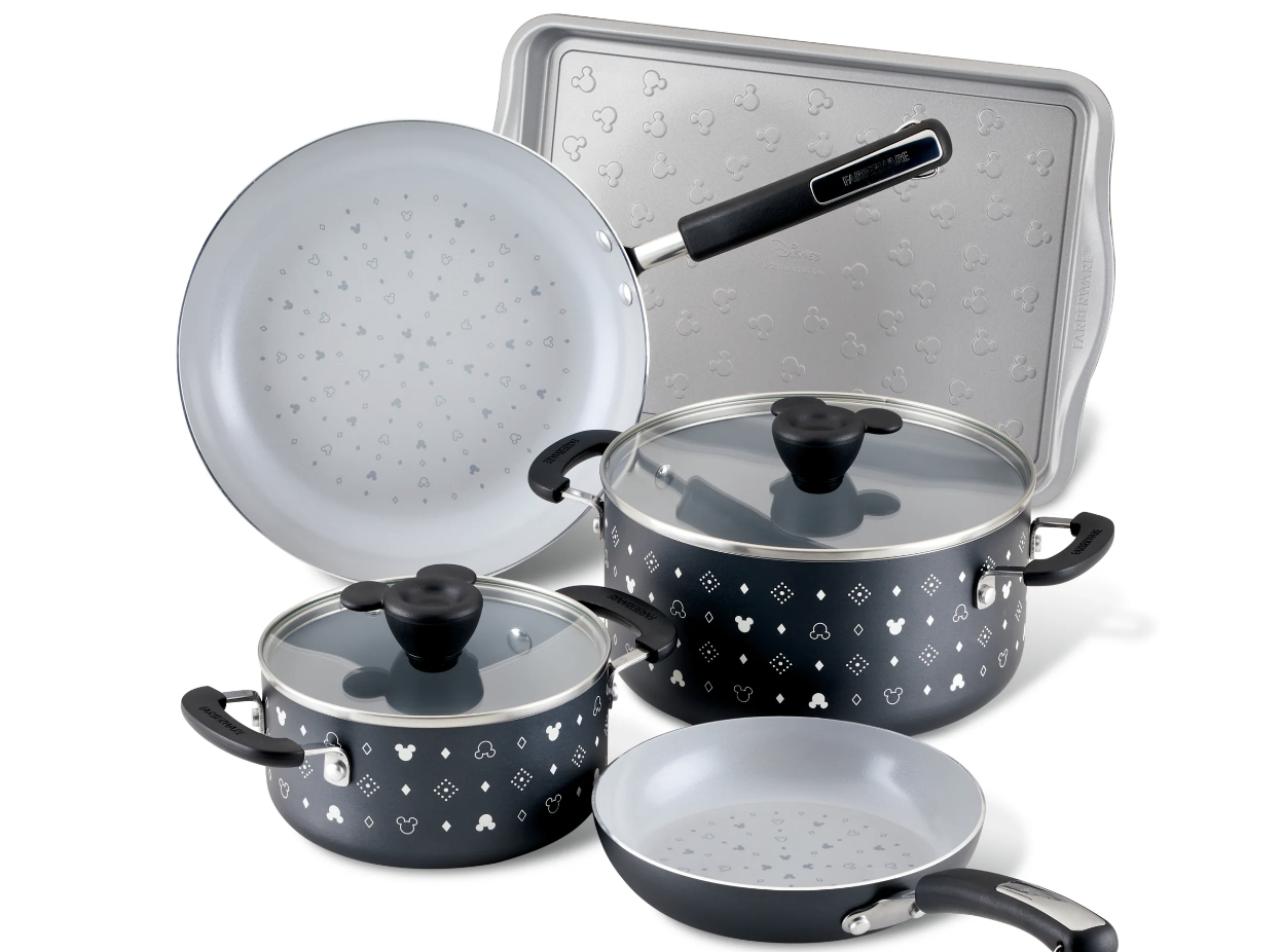 Bring the timeless magic of Disney’s Mickey Mouse to your kitchen with this 7-piece set from the Monochrome Collection, an exclusive line of cookware from Farberware inspired by Disney’s early-era black-and-white animated masterpieces.