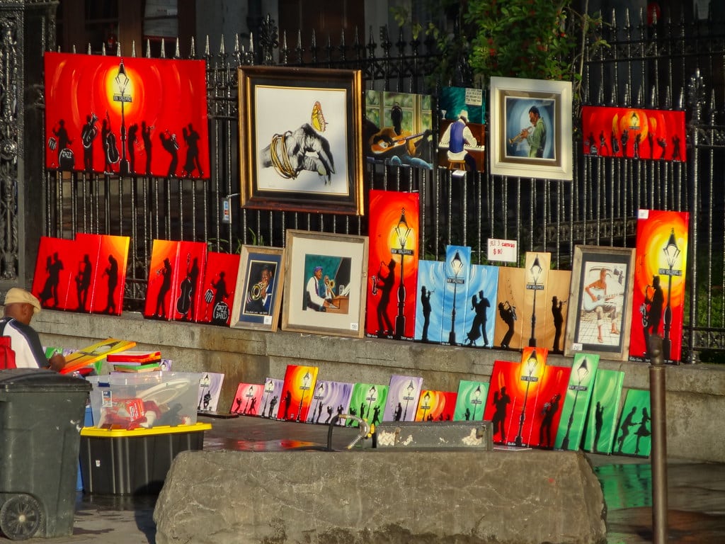 Jazz Paintings on fence in New Orleans” by denisbin is licensed under CC BY-ND 2.0
