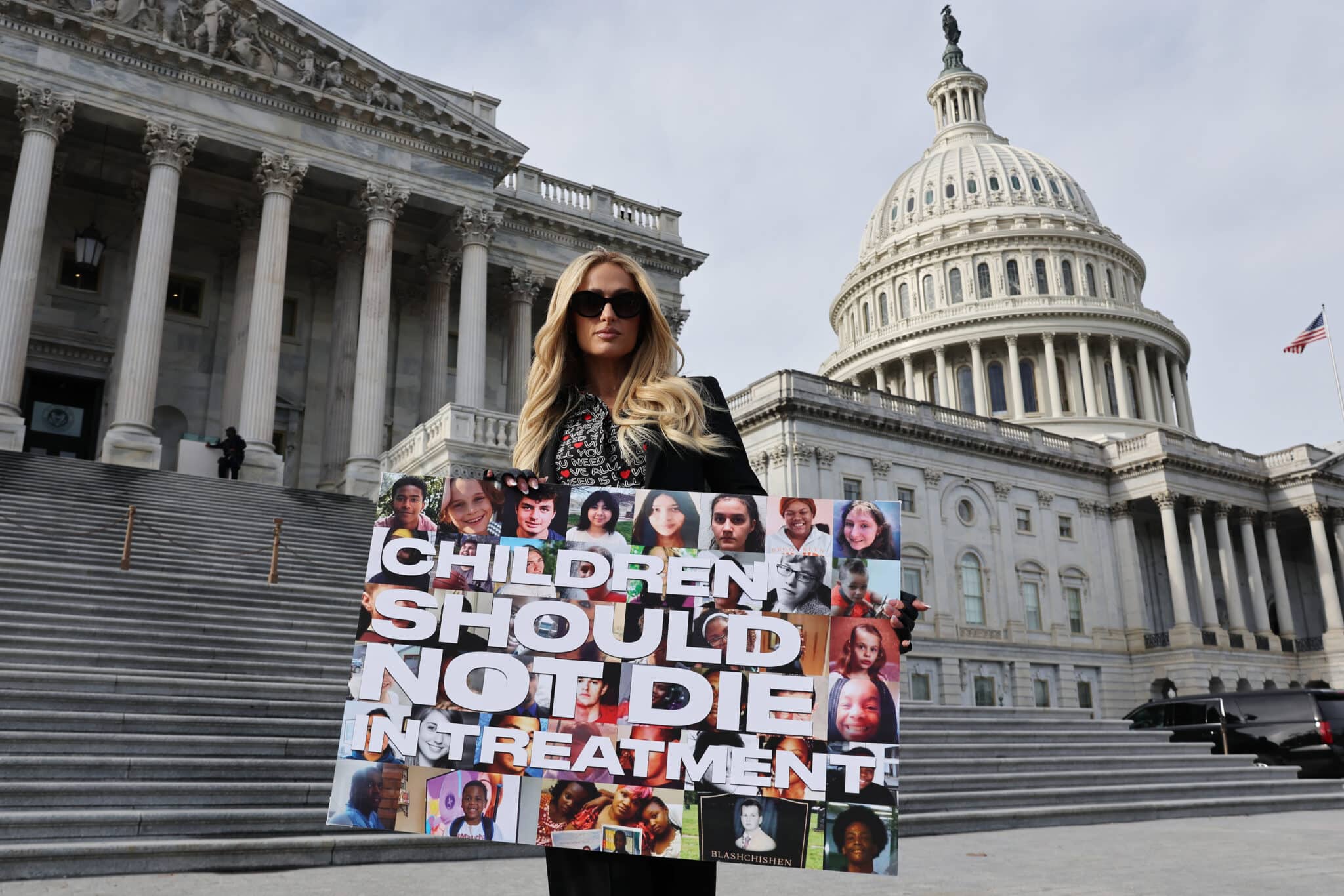 The bill aims to set clear standards for youth care in boarding schools, boot camps, and similar institutions, ensuring safety, proper treatment, and appropriate placement for children. One of the most striking images showed Hilton on Capitol Hill, holding a poster with photos of children and the poignant message: “Children should not die in treatment.”