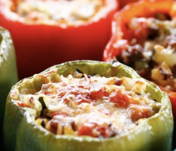 This vegetarian version of stuffed bell peppers is packed with flavor and protein using a mix of rice, beans, vegetables, and cheese. Itโs a wholesome, satisfying meal perfect for vegetarians or anyone looking to add more plant-based dishes to their diet.